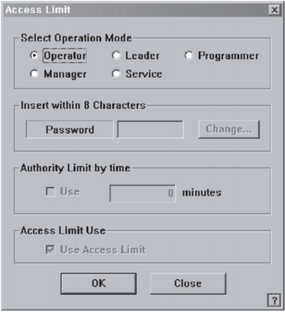 The password for programmer mode can be changed. When changing the operation mode from the plain user mode to programmer mode, the programmer password must be entered.